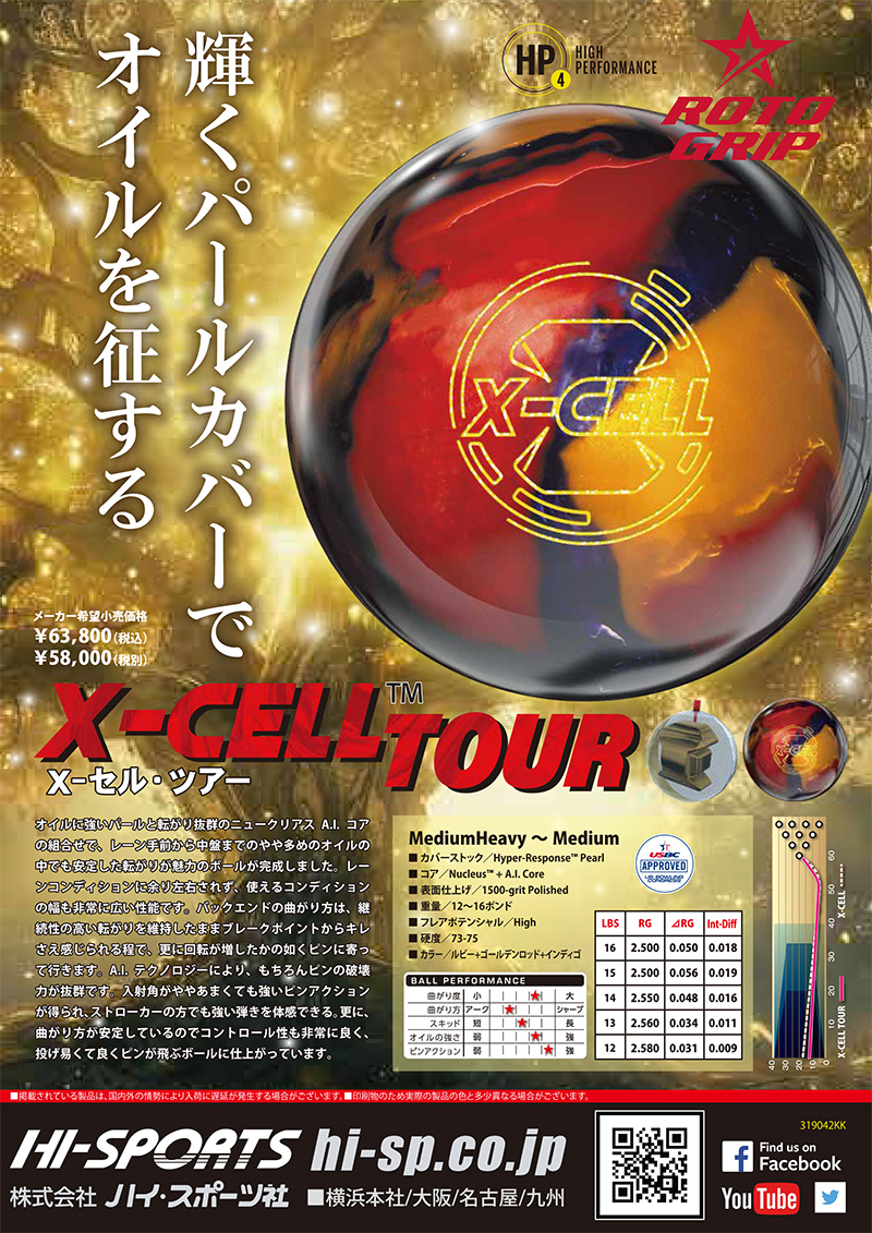 ●その持続性ある曲がりで評価が高いニュークリアスにA.I.技術をプラスしたX-セルシリーズの新製品「X-セル・ツアー」。 鋭くも持続性ある曲がりと最高のピンアクション!