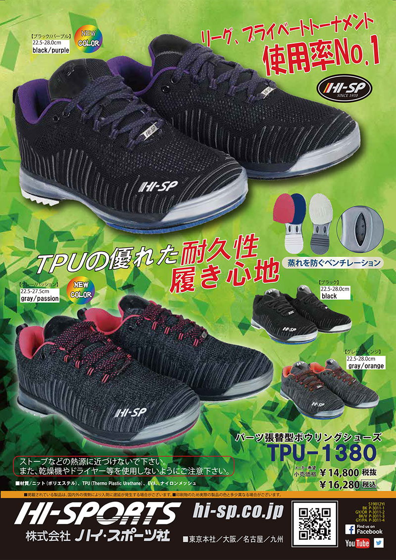 | 商品説明 | ●メーカー:ハイスポーツ ●材質:ポリエステル(アッパー)、TPU、EVA(ミッドソール)、ナイロンメッシュ(靴底通気口) ●カラー/取扱いサイズ:22.5cm〜27.5cm(0.5cm刻み) ●ワイズ: 24.0cm以下EE/24.5cm以上EEE ●付属パーツ:スライドパーツ SAW-0(フェルト)、クリーツパーツ MA-0(フェルト)、ヒールパーツ HAW-4(山型タイプ)、HAW-5(山型グリップタイプ)、キックラバーブルー(55°)、クリーツリムーバー ●左投げ右投げどちらでもベストフィットする「左右兼用タイプ」 ●柔らかく耐久性の高いTPU(サーモプラスチックウレタン)素材をミッドソールに初採用した軽量でフィット感抜群のパーツ張り替えタイプのボウリングシューズです。 ※TPUとはの略で、熱可塑性ウレタンで柔らかく耐久性があり、リサイクルしやすいというエコな特長を持っています。