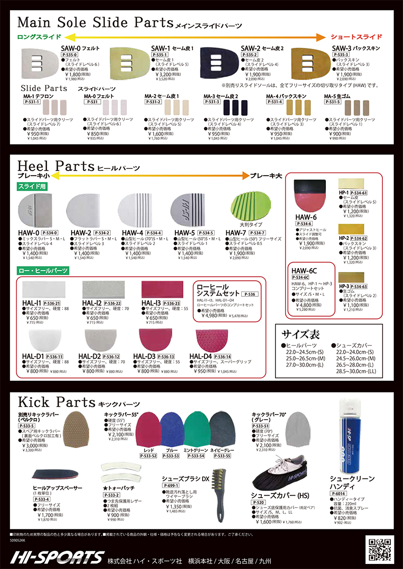 ●付属パーツ: キックラバー(55°)ネイビーグレー スライドパーツ SAW-0(フェルト) クリーツパーツ MA-0(フェルト) ヒールパーツ HAW-4(山型グリップ)、HAW-5(山型グリップ) トォーパッチ シューズカバー(片足) クリーツリムーバー