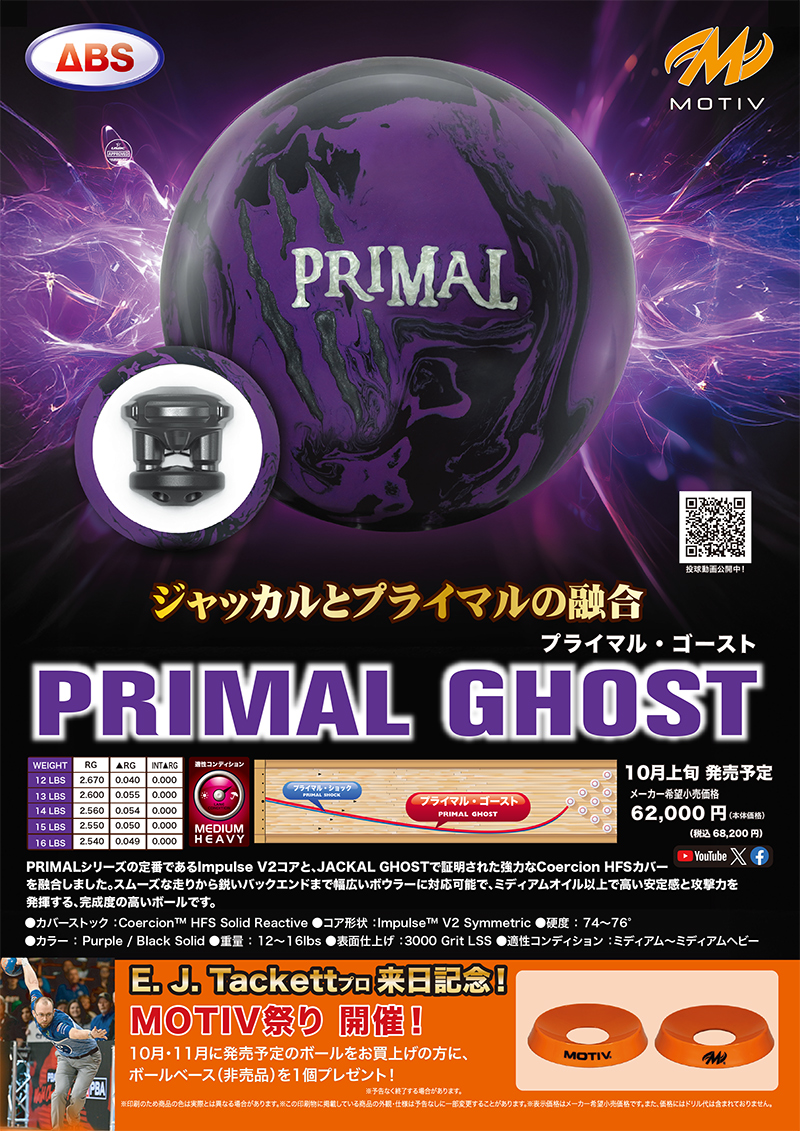 ■特記事項■ JACKAL GHOSTが誇った「安定感」と、PRIMAL RAGEが示した「爆発力」。その両極を高次元で調和させたPRIMAL GHOSTは、ボウラーの期待に応える新たなスタンダードとして、ラインナップの中核を担う存在になるでしょう。