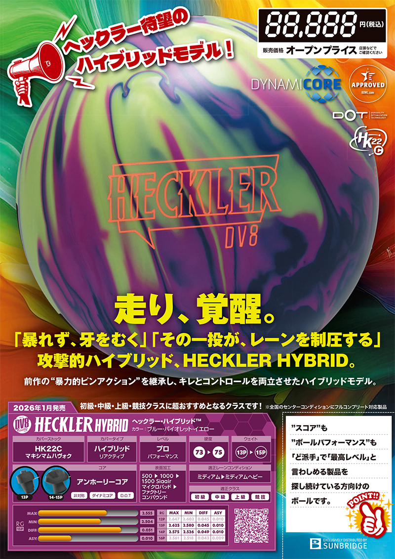 ●走り、覚醒。「暴れず、牙をむく。」「その一投が、レーンを制圧する。」攻撃的ハイブリッド、HECKLER HYBRID。 前作の“暴力的ピンアクション”を継承し、キレとコントロールを両立させたハイブリッドモデル。