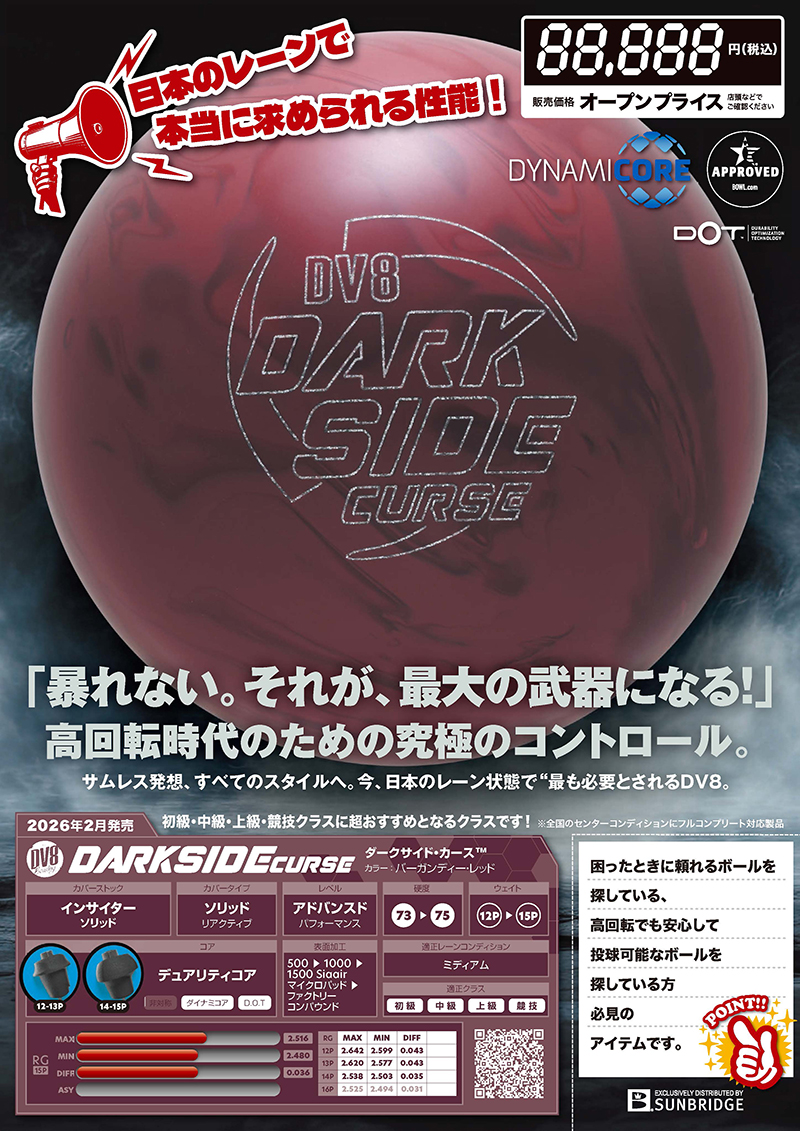 ●「暴れない。それが、最大の武器になる!」高回転時代のための究極のコントロール。 サムレス発想、すべてのスタイルへ。今、日本のレーン状態で“最も必要とされるDV8。