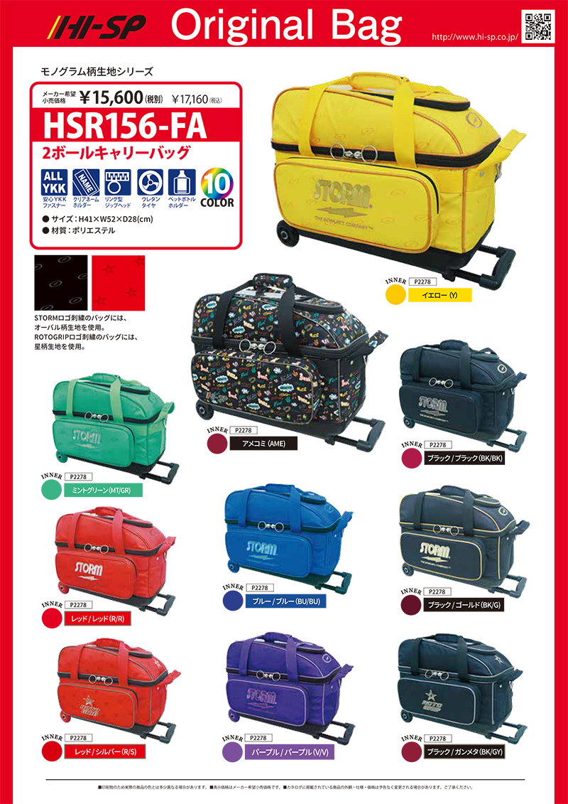 | 商品名 | ストーム・ロトグリップ HSR156-FA 2ボールキャリーバッグ |