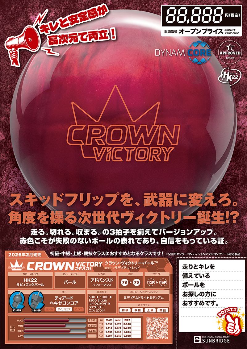CROWN VICTORY PEARLは、“スコアを作るためのパール”を探しているすべてのボウラーに応える一球です。
