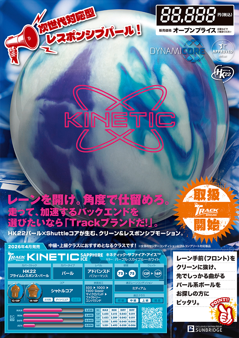 Track「KINETIC SAPPHIRE ICE™」は、信頼のKineticラインを継承しながら、現代のトランジション環境に対応するために設計されたレスポンシブパールモデルです。